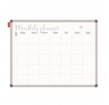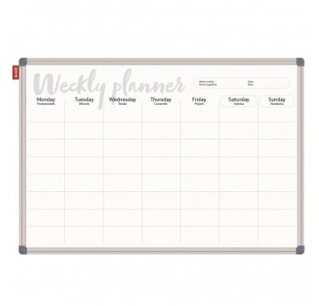 Planer tygodniowy Memobe, tablica suchościeralna magnetyczna biała z nadrukiem w kol. czarnym, rama aluminiowa classic, 90X60 cm