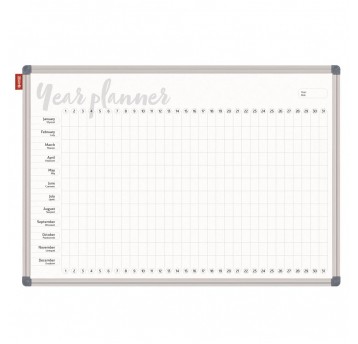 Planer roczny Memobe, tablica suchościeralna magnetyczna biała z nadrukiem w kol. czarnym, rama aluminiowa classic150X100 Cm