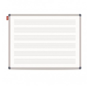 Tablica suchościeralna magnetyczna biała z nadrukiem pięciolinii MemoBe, w kolorze czarnym, rama aluminiowa Classic, 170x100 cm