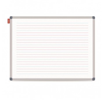 Tablica suchościeralna magnetyczna biała z nadrukiem linii kolorowych do nauki pisania MemoBe, rama aluminiowa Classic, 180x120 cm
