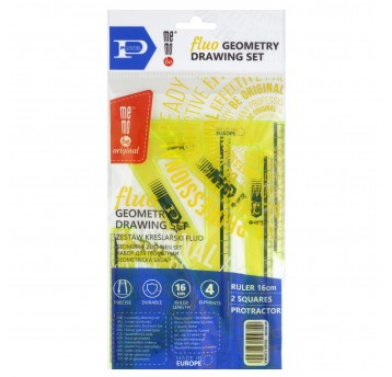 Zestaw kreślarski MemoBe z linijką 16 cm żółty flu