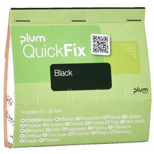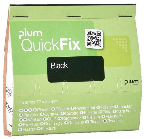 - Wykonane z czarnej tkaniny poliestrowej plastry z opatrunkiem do dozownika naściennego Plum QuickFix