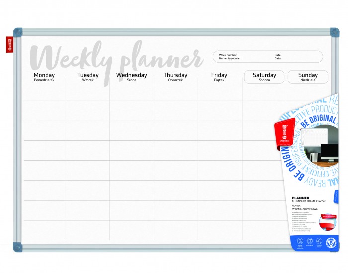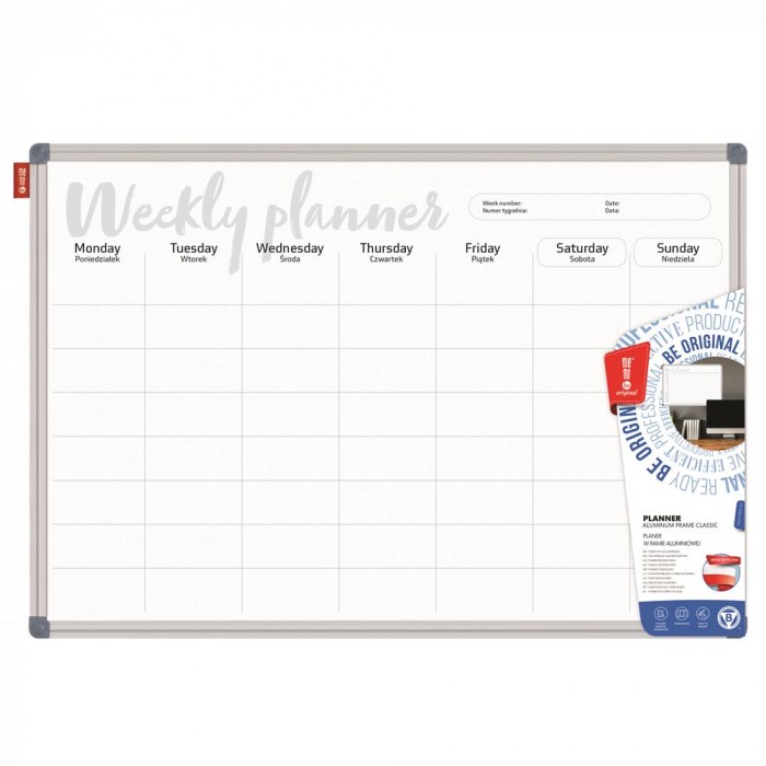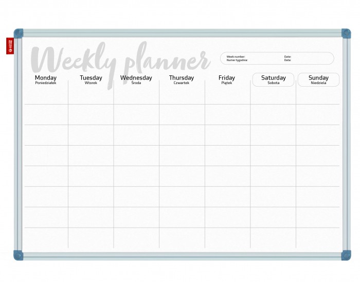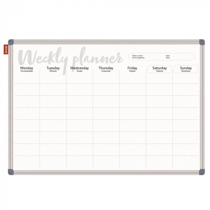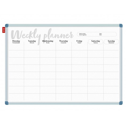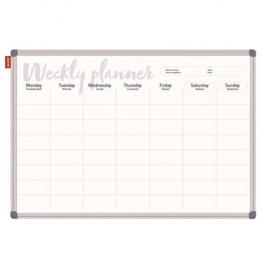 - tablica z powierzchnią suchościeralno-magnetyczną z nadrukowanym terminarzem do planowania zadań tygodniowych, miesięcznych lub rocznych