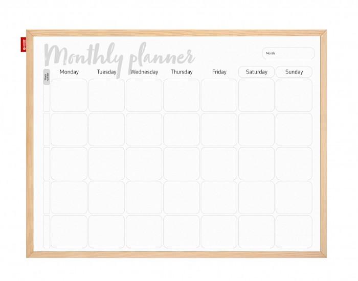 - powierzchnia suchościeralna magnetyczna z nadrukowanym terminarzem do planowania zadań miesięcznych