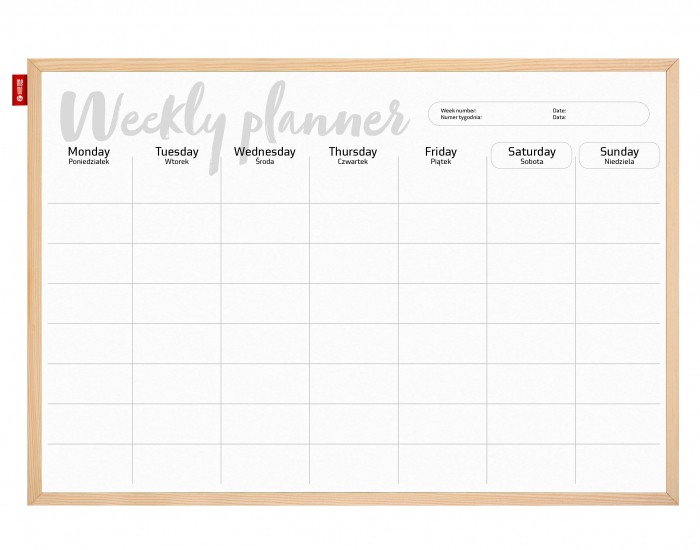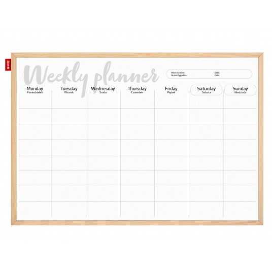 - powierzchnia suchościeralna magnetyczna z nadrukowanym terminarzem do planowania zadań tygodniowych