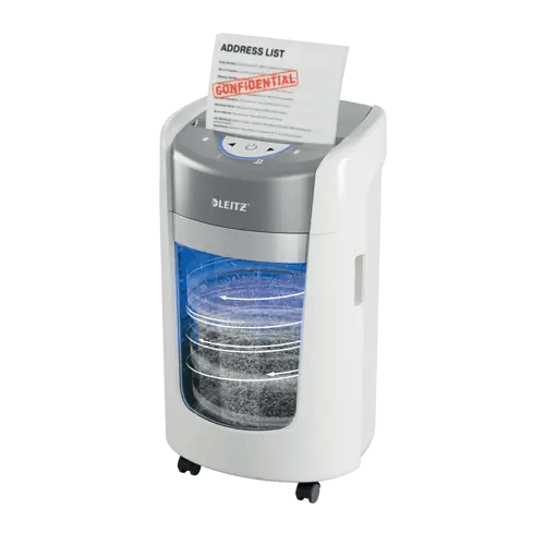 - Niezwykle cicha praca urządzenia - gwarantuje niezakłócony spokój w miejscu pracy (pod warunkiem regularnego stosowania arkuszy Leitz do oliwienia ostrzy)