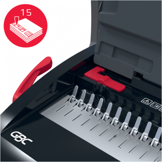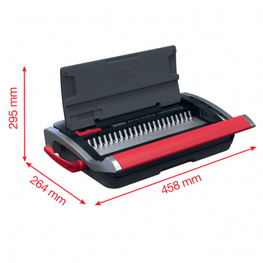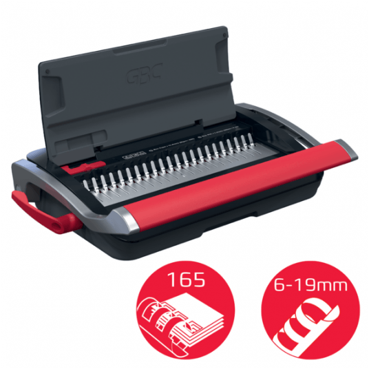 - Binduje do 165 kartek A5/A4 (80 g/m2) przy użyciu grzbietów o średnicy 19 mm