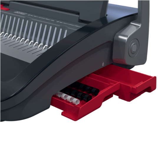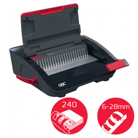 - Binduje do 240 kartek A5/A4 (80 g/m2) przy użyciu grzbietów o średnicy średnicy 28 mm