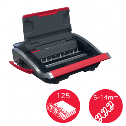 - Binduje do 125 kartek A5/A4 (80 g/m2) przy użyciu grzbietów drutowych o średnicy 14 mm