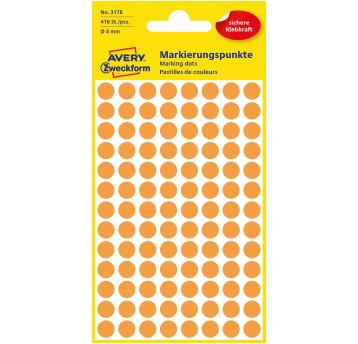 Kolorowe kółka do zaznaczania Avery Zweckform, 416 etyk./op., średnica 8 mm, pomarańczowe odblaskowe