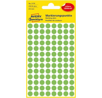 Kolorowe kółka do zaznaczania Avery Zweckform, 416 etyk./op., średnica 8 mm, zielone odblaskowe