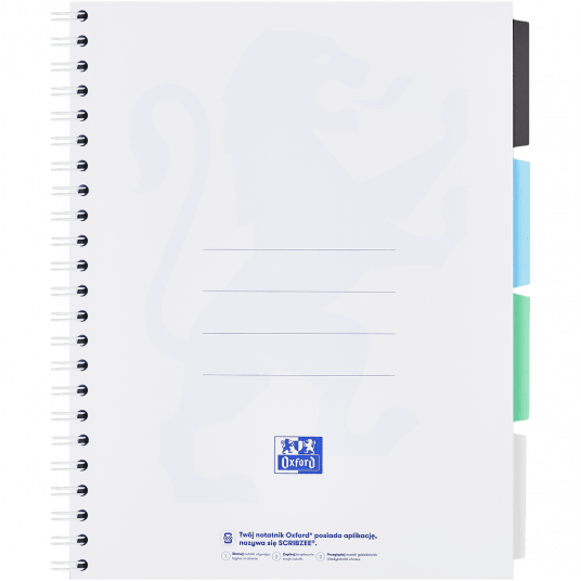 Ruchome, polipropylenowe przekładki dzielą kołozeszyt na 4 części, dzięki czemu można prowadzić notatki z kilku przedmiotów jednocześnie