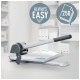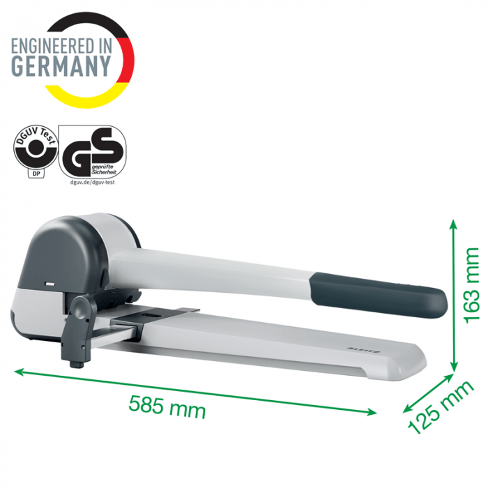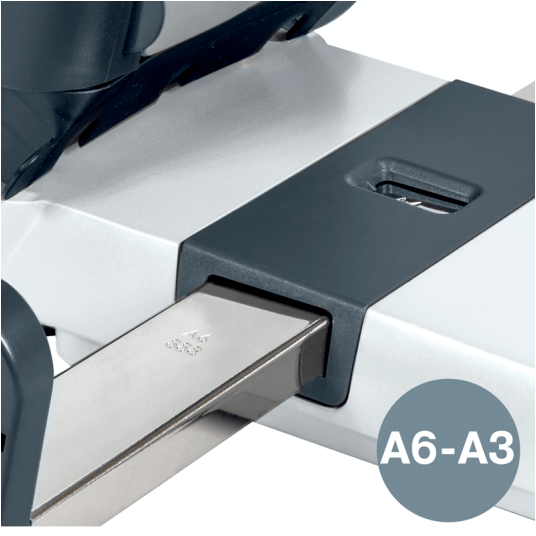 - Bezpieczna w obsłudze prowadnica z łatwymi do odczytania oznaczeniami formatów (do A3) zapewnia precyzyjne dziurkowanie