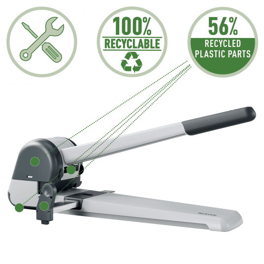 - Wysokiej jakości wzornictwo i materiały, możliwość naprawy przy pomocy części zamiennych, aby przedłużyć okres przydatności dziurkacza do użycia. Części zamienne: 17230000 Wymienne ostrze, 106360000 Pasek olejowanego papieru 300 mm/30 m, 106390090 Obudowa, 51630000 Prowadnica, 51640000 Obudowa, 5165 Pokrywa zabezpieczająca, 5166 Pojemnik na ścinki, 5167000 Akcesoria do dziurkacza