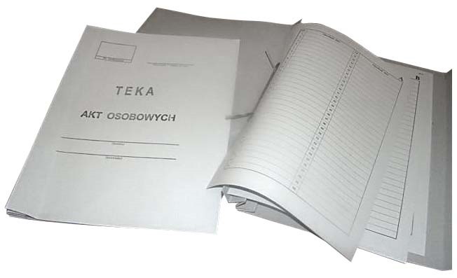 - Teczka do akt osobowych wykonana z tektury 350 g/m2 - W środku 5 wkładek A B C D E w formacie A-4