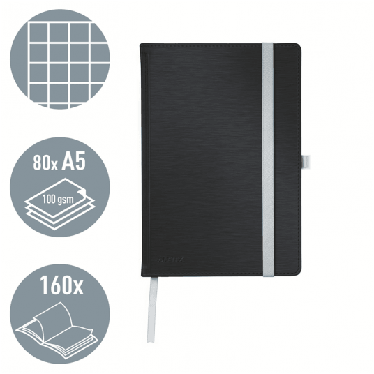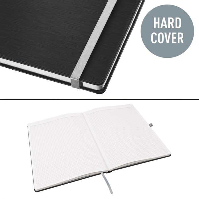 - Wysokiej jakości klasyczny notatnik w twardej oprawie, z nowoczesnym, przyjemnym w dotyku wykończeniem powierzchni okładki i elegancką kolorystyką.