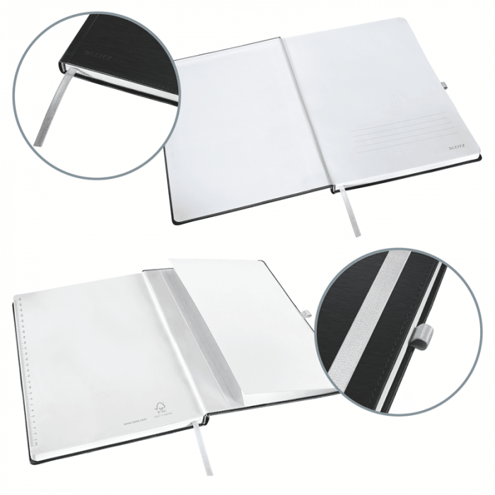 - Zintegrowana kieszonka na wewnętrznej stronie tylnej okładki umożliwia szybki dostęp do luźnych kartek czy wizytówek