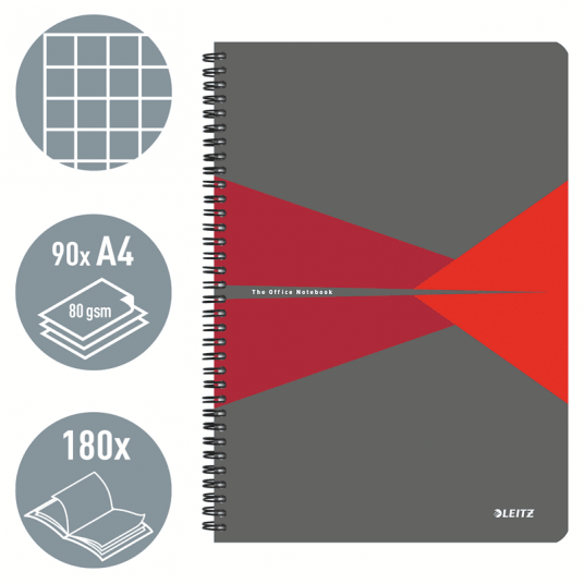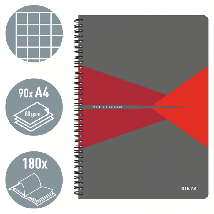 Kołonotatnik A4 Leitz Office Card 90k kratka czerw