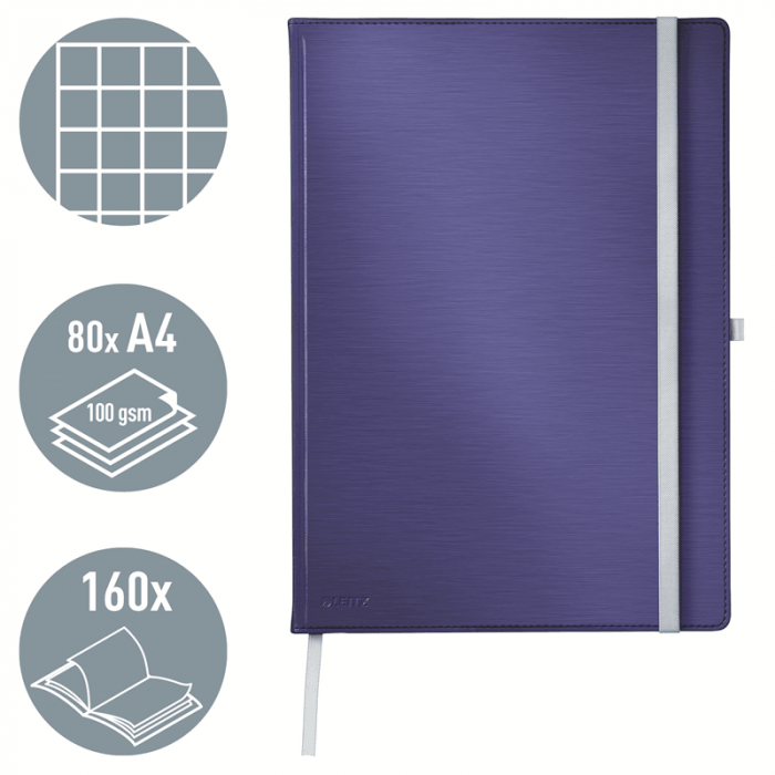 - Wysokiej jakości klasyczny notatnik w twardej oprawie, z nowoczesnym, przyjemnym w dotyku wykończeniem powierzchni okładki i elegancką kolorystyką.