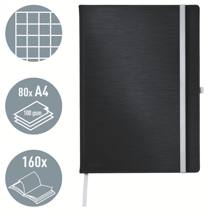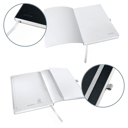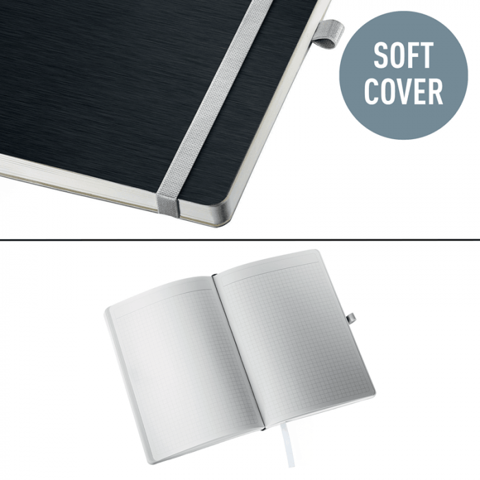 - Wysokiej jakości klasyczny notatnik w twardej oprawie, z nowoczesnym, przyjemnym w dotyku wykończeniem powierzchni okładki i elegancką kolorystyką.