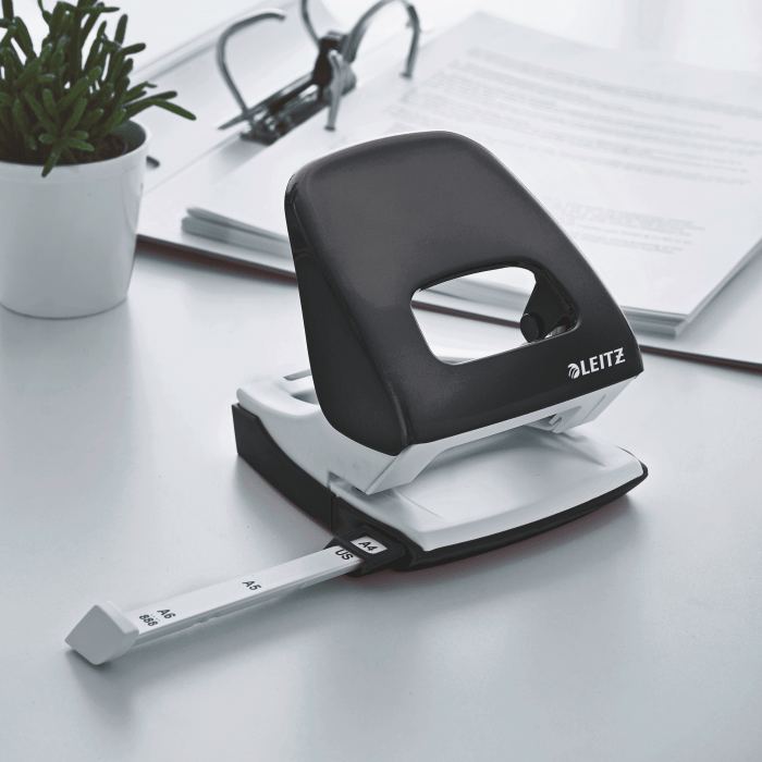 - Łatwo dopasowujący się wygodny uchwyt i wytrzymałe ostrza zmniejszają wysiłek podczas dziurkowania