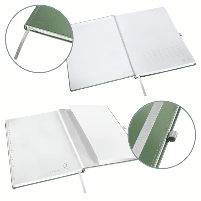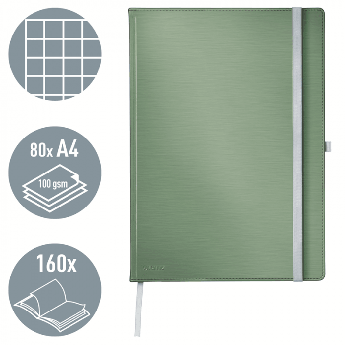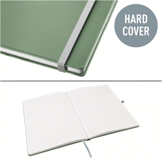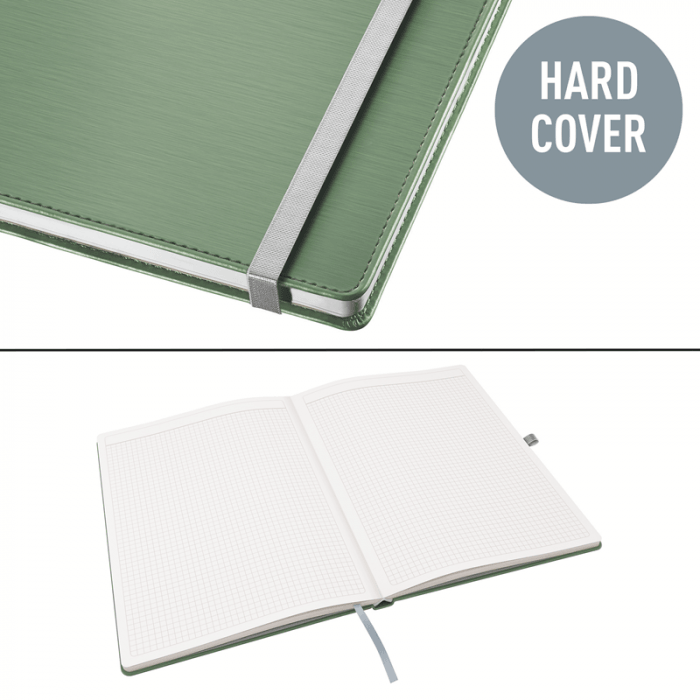 - Wysokiej jakości klasyczny notatnik w twardej oprawie, z nowoczesnym, przyjemnym w dotyku wykończeniem powierzchni okładki i elegancką kolorystyką.