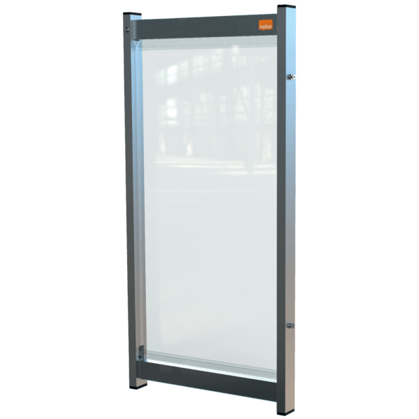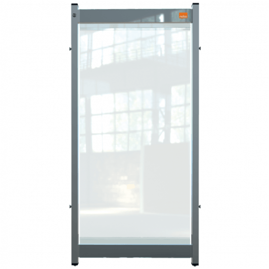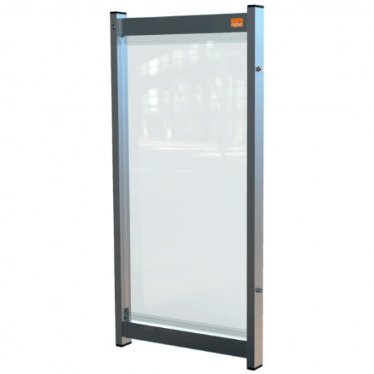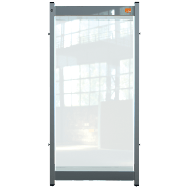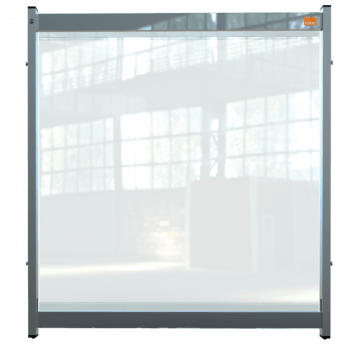 -przegroda dzieląca na biurko Nobo z przezroczystego PCV może być używana w połączeniu z dodatkowymi modułowymi ekranami i kompatybilnym wspornikiem ramy (produkt: 1915557) w celu stworzenia połączonego systemu dzielącego
