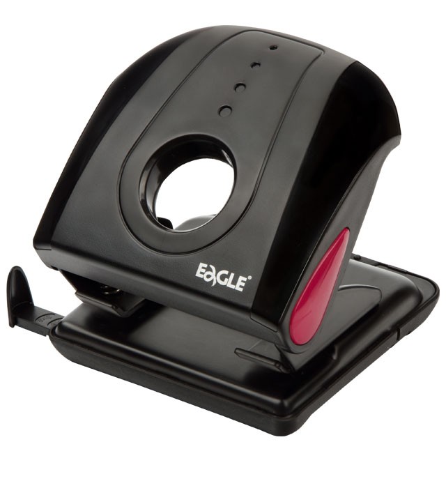 – czarne dziurkacze z kolorowymi elementami, które nie dominują biurka, ale dyskretnie dodają mu charakteru