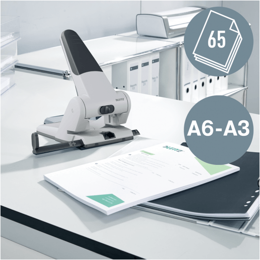 - Mocny i wytrzymały dziurkacz, dziurkuje do 65 kartek (80 g/m²) jednocześnie