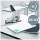 - Bezpieczna w obsłudze prowadnica z łatwymi do odczytania oznaczeniami formatów (do A3) zapewnia precyzyjne dziurkowanie