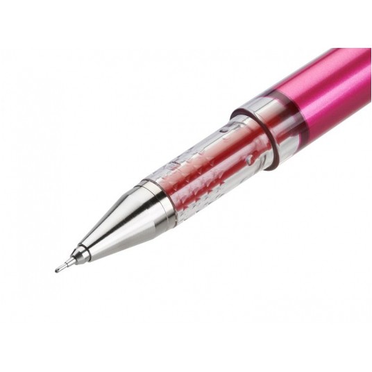 Cienkopis żelowy o delikatnej, kobiecej obudowie z kryształkiem na skuwce. Posiada polimerowy tusz zapobiegający rozlewaniu się podczas pisania. Unikalna konstrukcja głowicy piszącej, dzięki której kulka, mimo małej głowicy piszącej, obraca się lekko i płynnie. Wysoka precyzja pisania, bez efektu skrobania. Możliwość pisania pod każdym kątem. Posiada wymienny wkład. Grubość linii pisania: 0,2 mm, długość linii pisania: 1000 m.