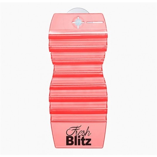 Najwyższej jakości zapachowa zawieszka żelowa. Wydziela intensywny, przyjemny i trwały zapach przez około 30 dni. Zawieszka Fresh BLITZ odświeży oraz utrzyma przyjemny zapach w każdym pomieszczeniu- toalecie, biurze, szafie ubraniowej, etc. Posiada możliwość zamontowania na płaskich powierzchniach za pomocą przyssawki (w zestawie). Nowoczesny, przeźroczysty design w kształcie harmonijki pasuje do każdego wnętrza. Produkt jest nietoksyczny, biodegradowalny.
